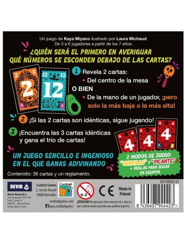 Un, dos, tres… ¡Trío! Busca y recuerda las cartas que tienen el resto de los jugadores y las que hay en el centro de la mesa para formar conjuntos de tres cartas iguales antes que lo haga el resto. Disfruta de un rato agradable con el modo sencillo, desafía a tus rivales con el modo picante o compite formando equipos. Sea como sea, sea con quien sea, Trio promete horas de diversión con tan solo unas pocas cartas.